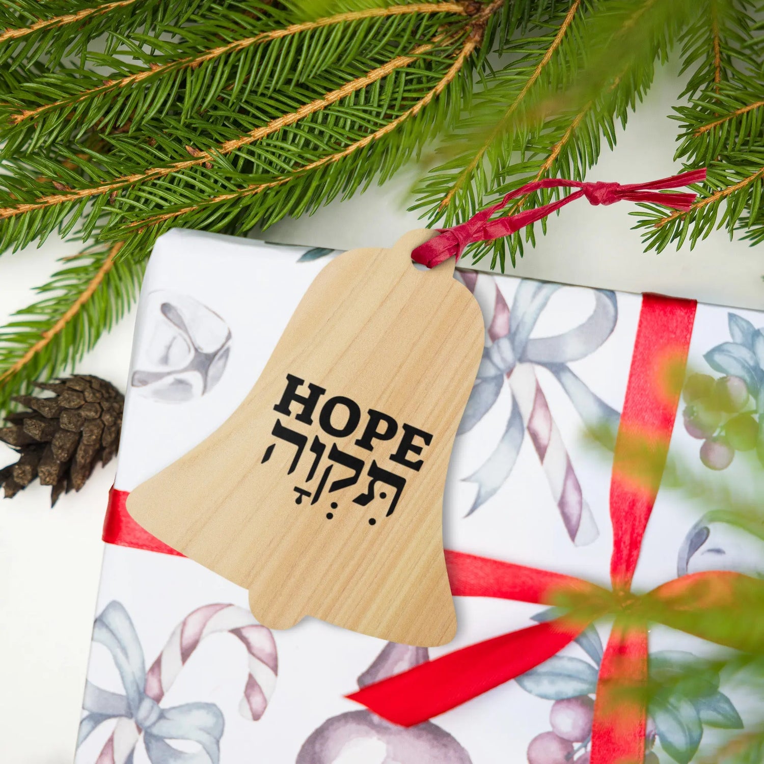 Hope in Hebrew and English Wooden Ornament - Bell is backordered and will ship as soon as it is back in stock.