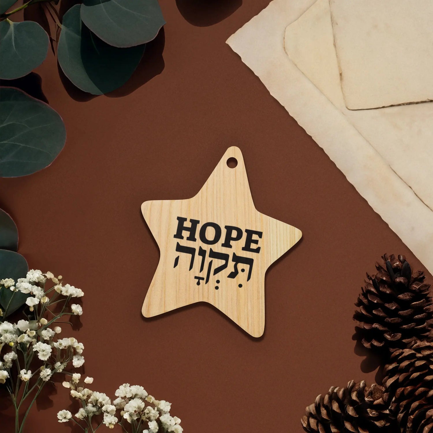 Celebrate the timeless message of hope with our “Hope” Wooden Ornament, featuring the word “Hope” beautifully in both Hebrew (“תקווה”) and English. Crafted from natural wood, this ornament is a meaningful symbol of faith, resilience, and inspiration. Whether used as a holiday decoration or a year-round reminder, its simple yet profound design speaks to the heart.