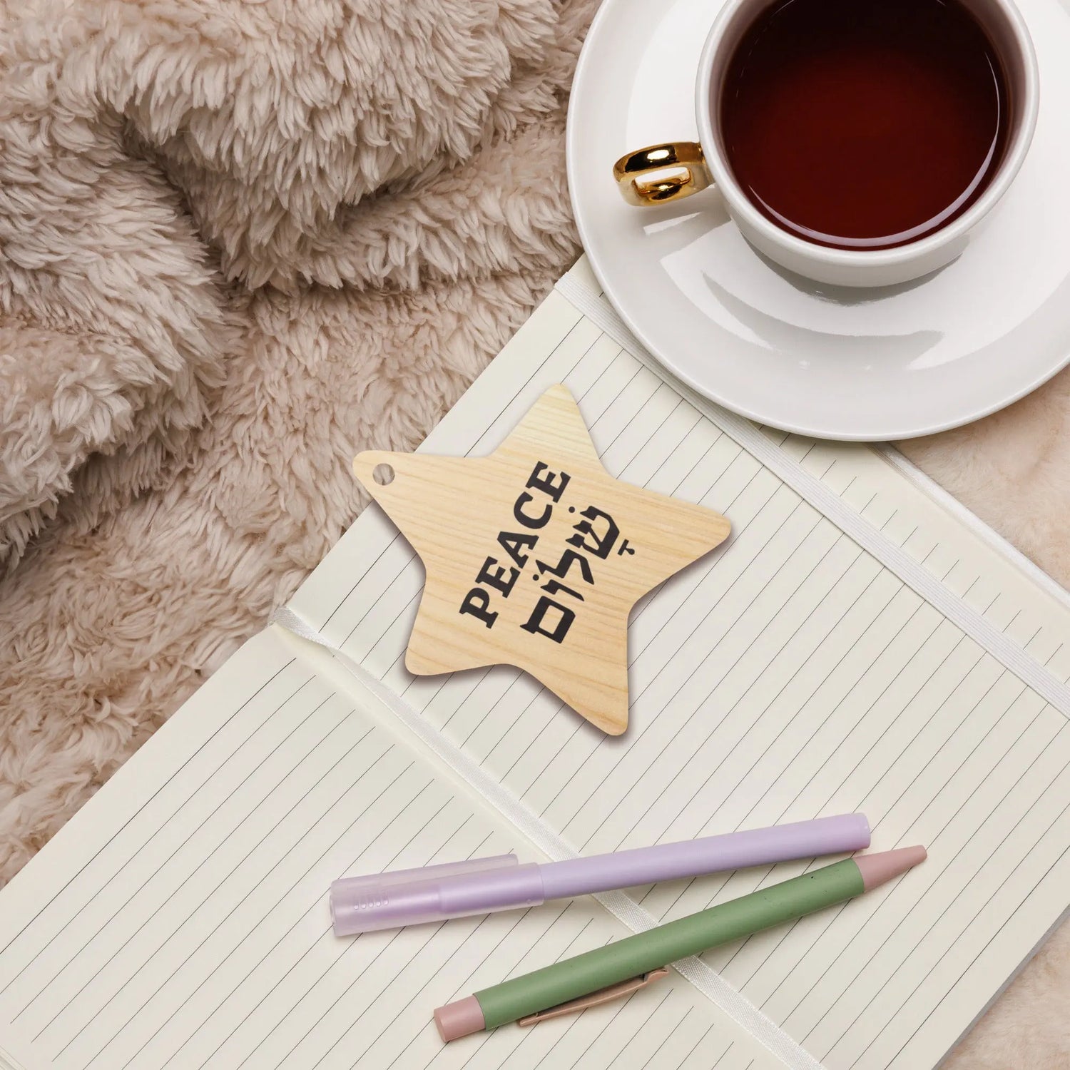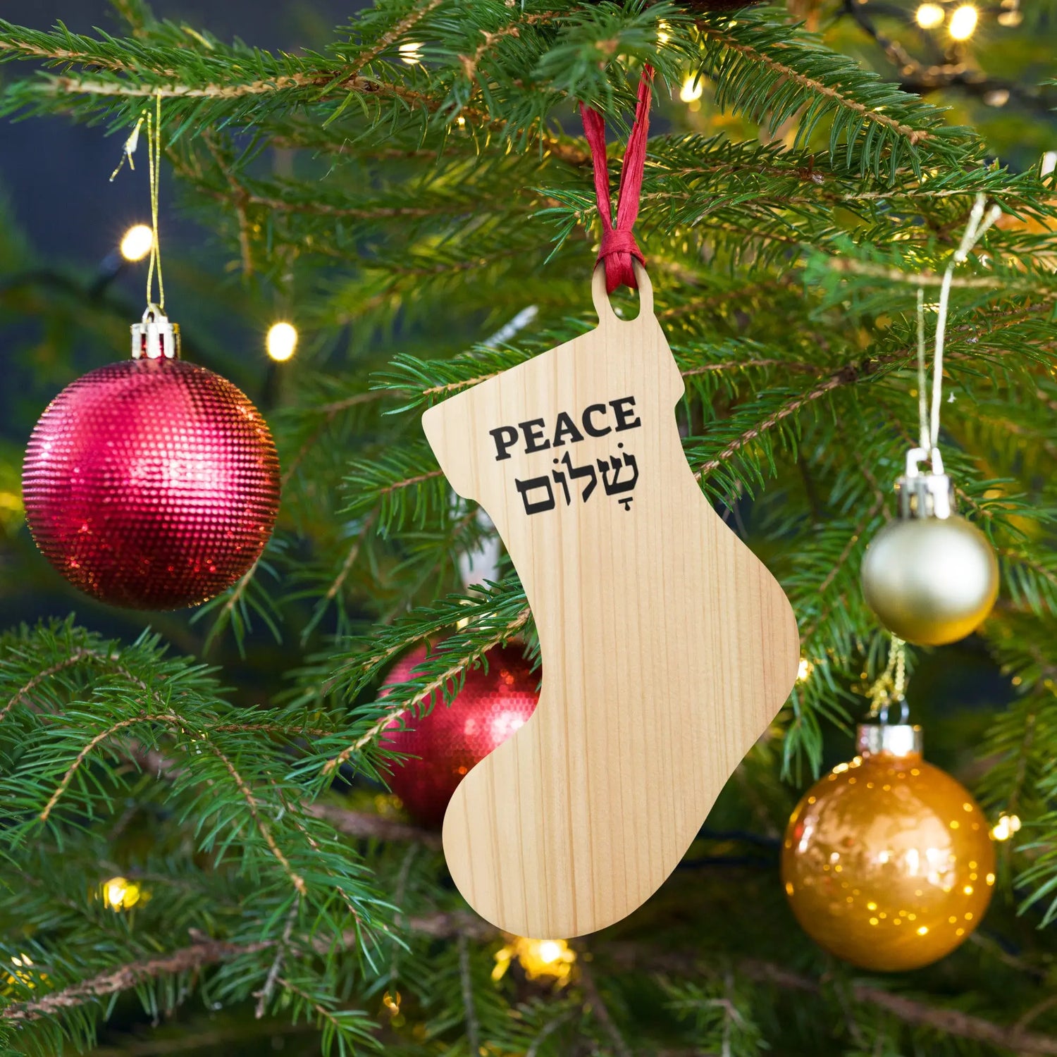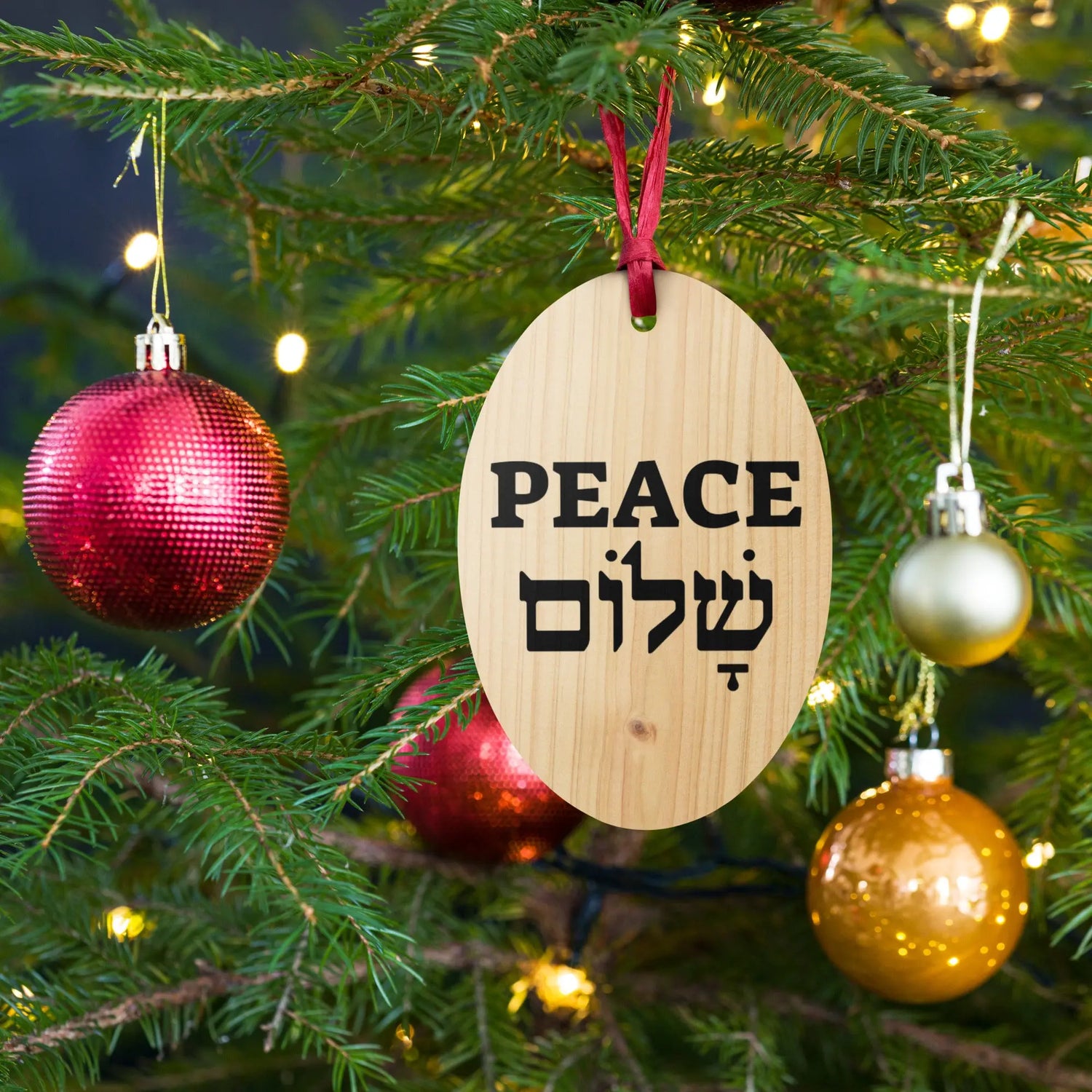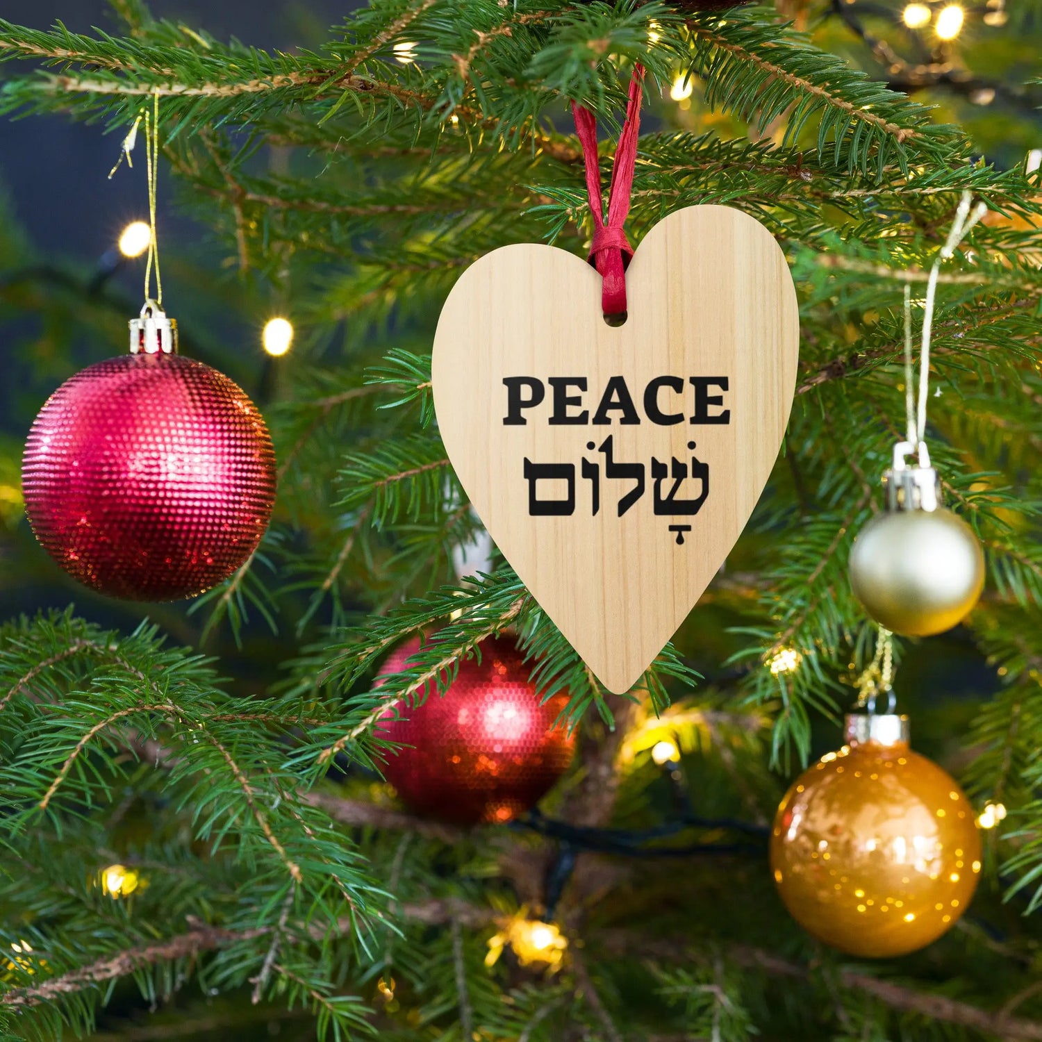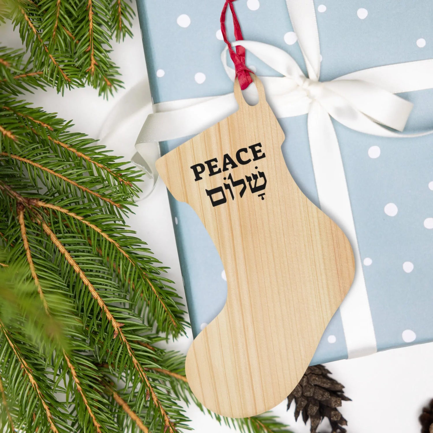Celebrate the profound message of peace with our Peace in Hebrew and English Wooden Ornament. Featuring the word “Peace” beautifully in both Hebrew (“שלום”) and English, this elegant wooden ornament symbolizes harmony, calm, and hope. Its natural wood finish and simple yet meaningful design make it a perfect addition to your holiday decor or a thoughtful gift for any occasion.