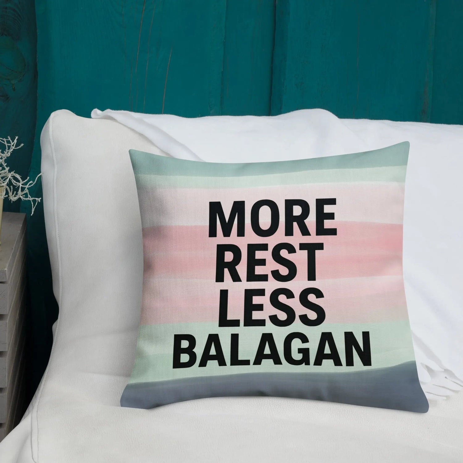 More Rest, Less Balagan Premium Pillow - Israeli Humor Meets Holy Land Comfort - 18″×18″ is backordered and will ship as soon as it is back in stock.