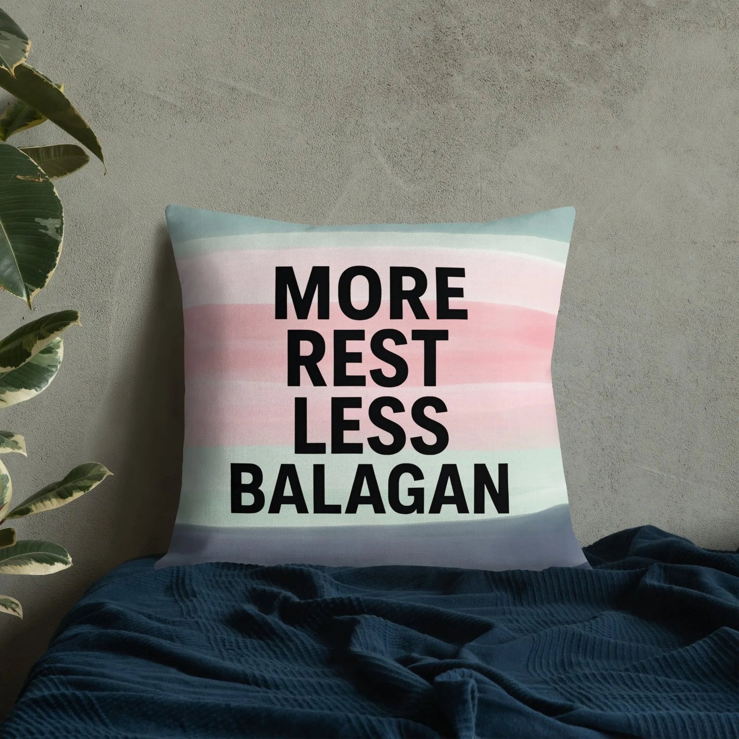 Whether you're decorating your couch, prayer corner, or guest room, this More Rest Less Balagan throw pillow is a must-have for anyone who loves Israel and a good laugh.