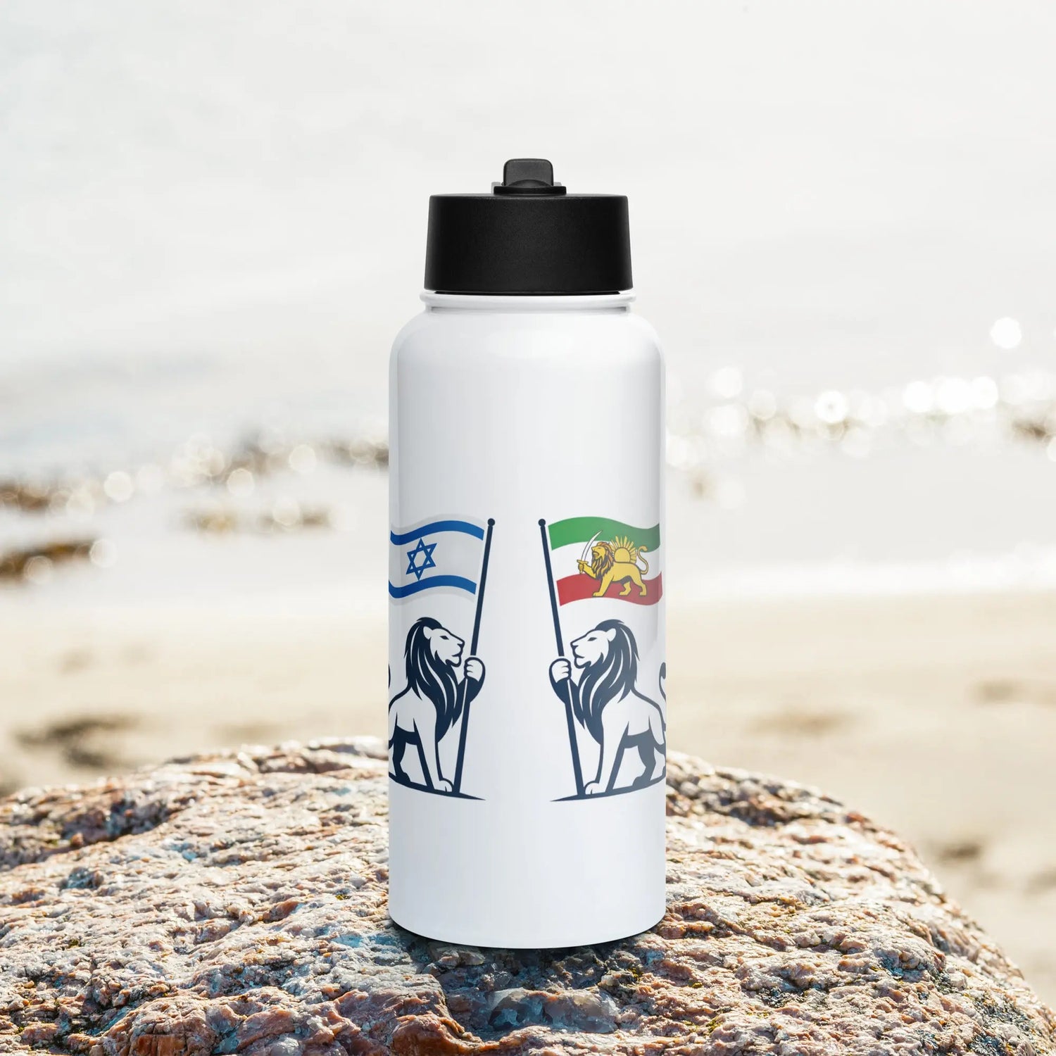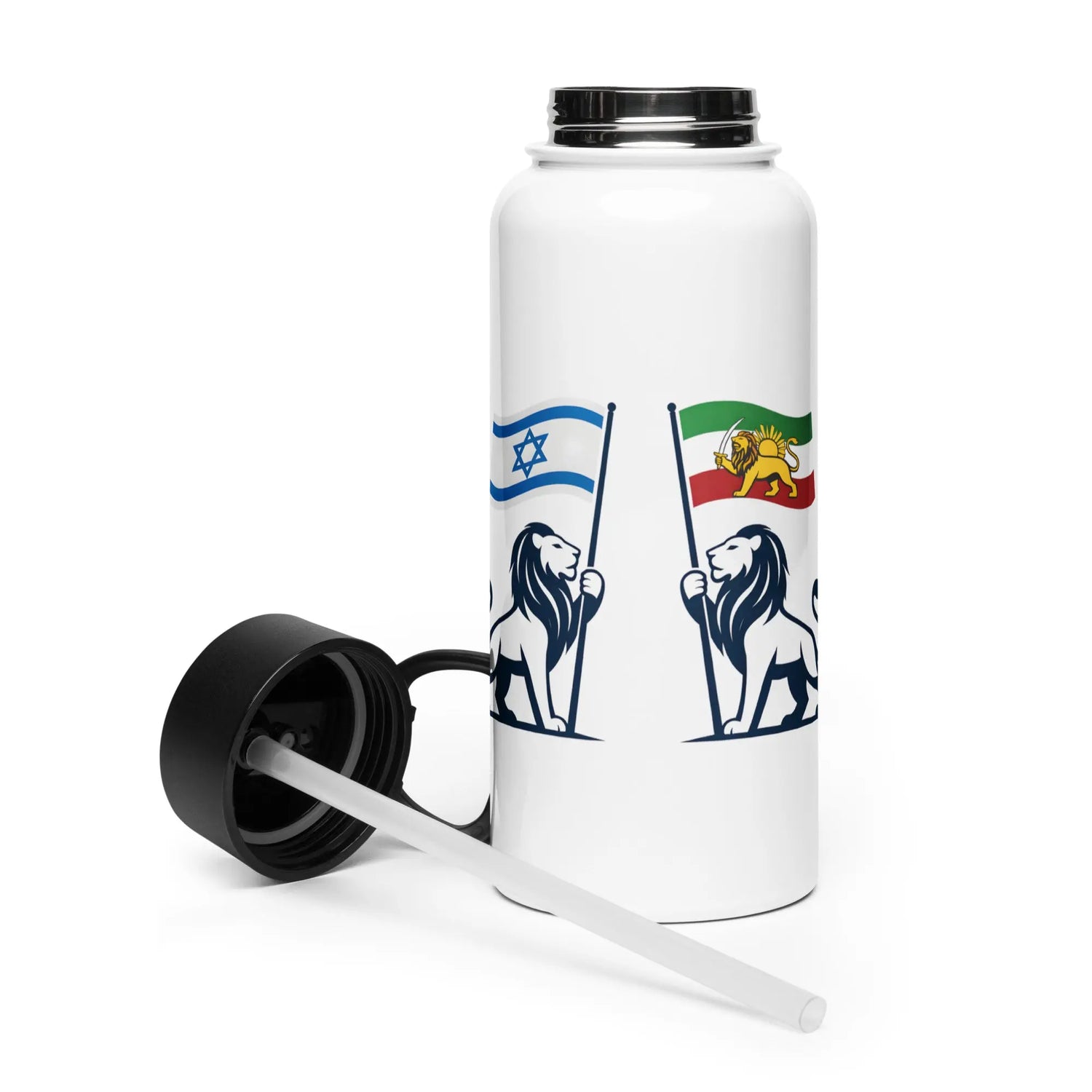 The Israel Iran Unity Water Bottle is a bold symbol of strength, pride, and friendship between the Iranian and Israeli people.