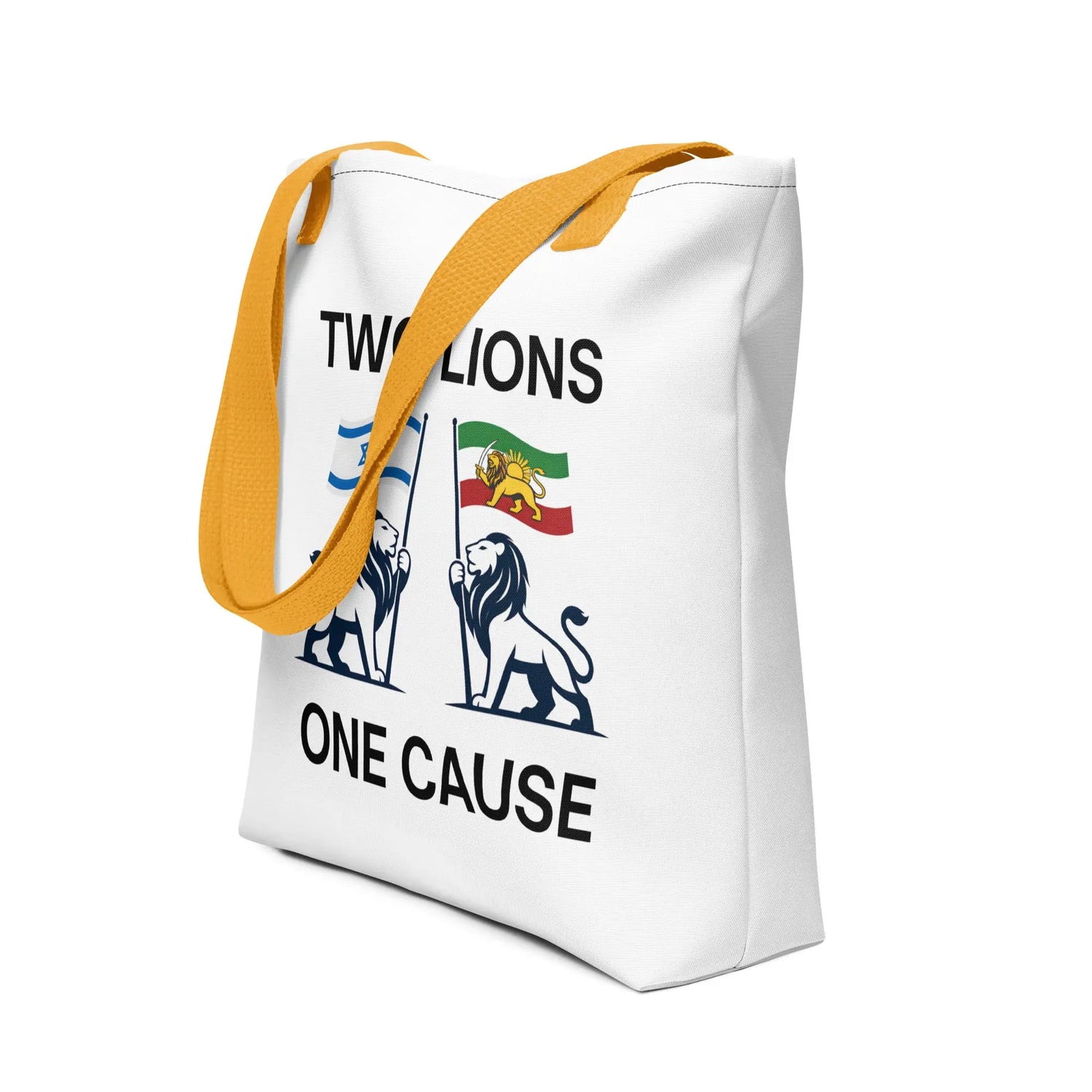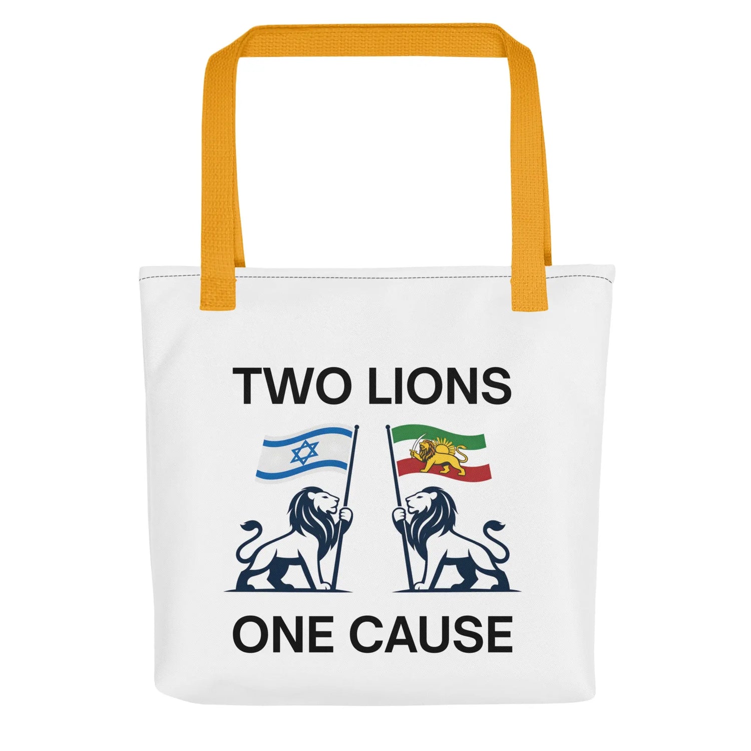 The Two Lions One Cause Tote Bag is a bold everyday statement of unity between the Iranian and Israeli people.