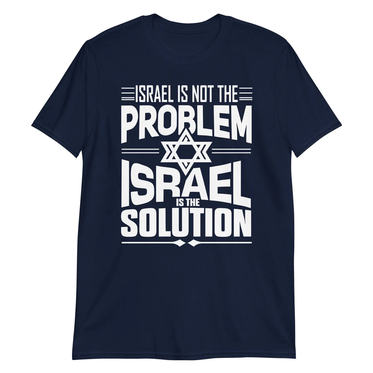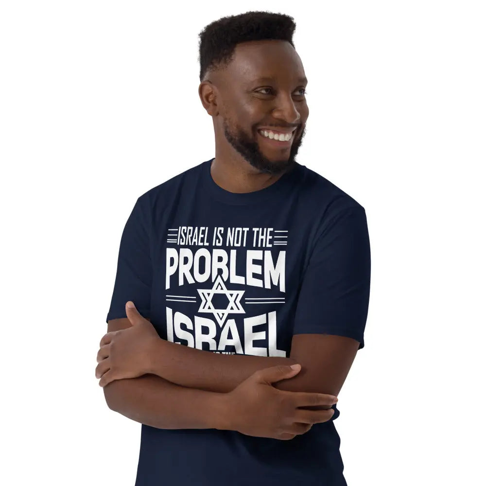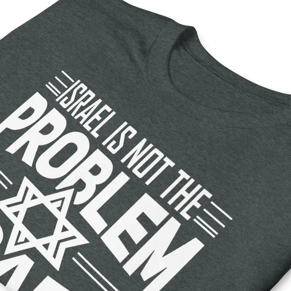 Showcase your unwavering support for Israel with our exclusive 'Israel Is Not the Problem, Israel Is the Solution' Short-Sleeve Unisex T-Shirt. This powerful statement piece boldly proclaims your stance on the Israeli-Palestinian conflict, emphasizing Israel's role as a beacon of solutions and progress.