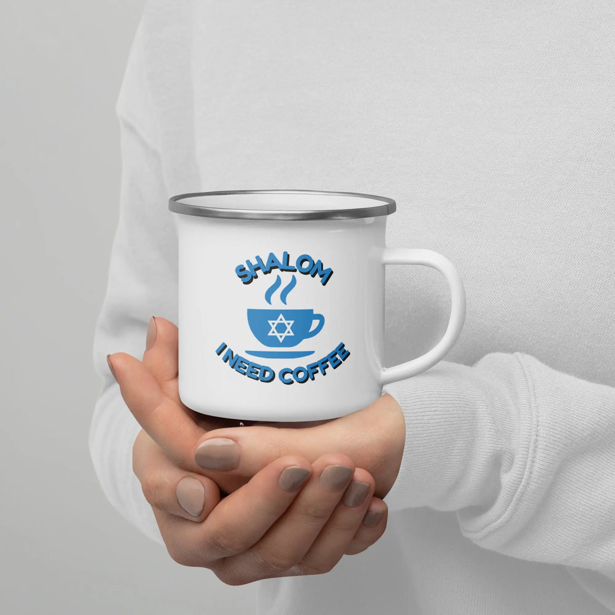El saludo amistoso, "Shalom", aporta un toque de cultura judía a tu mañana, mientras que "I Need Coffee" añade un toque familiar para todos los amantes de la cafeína. Ya sea que estés saboreando tu café favorito en casa o regalándoselo a un amigo, esta taza sin duda alegrará cualquier pausa para el café.