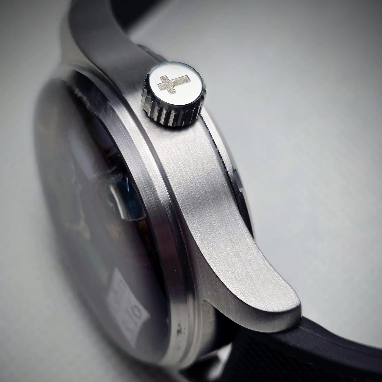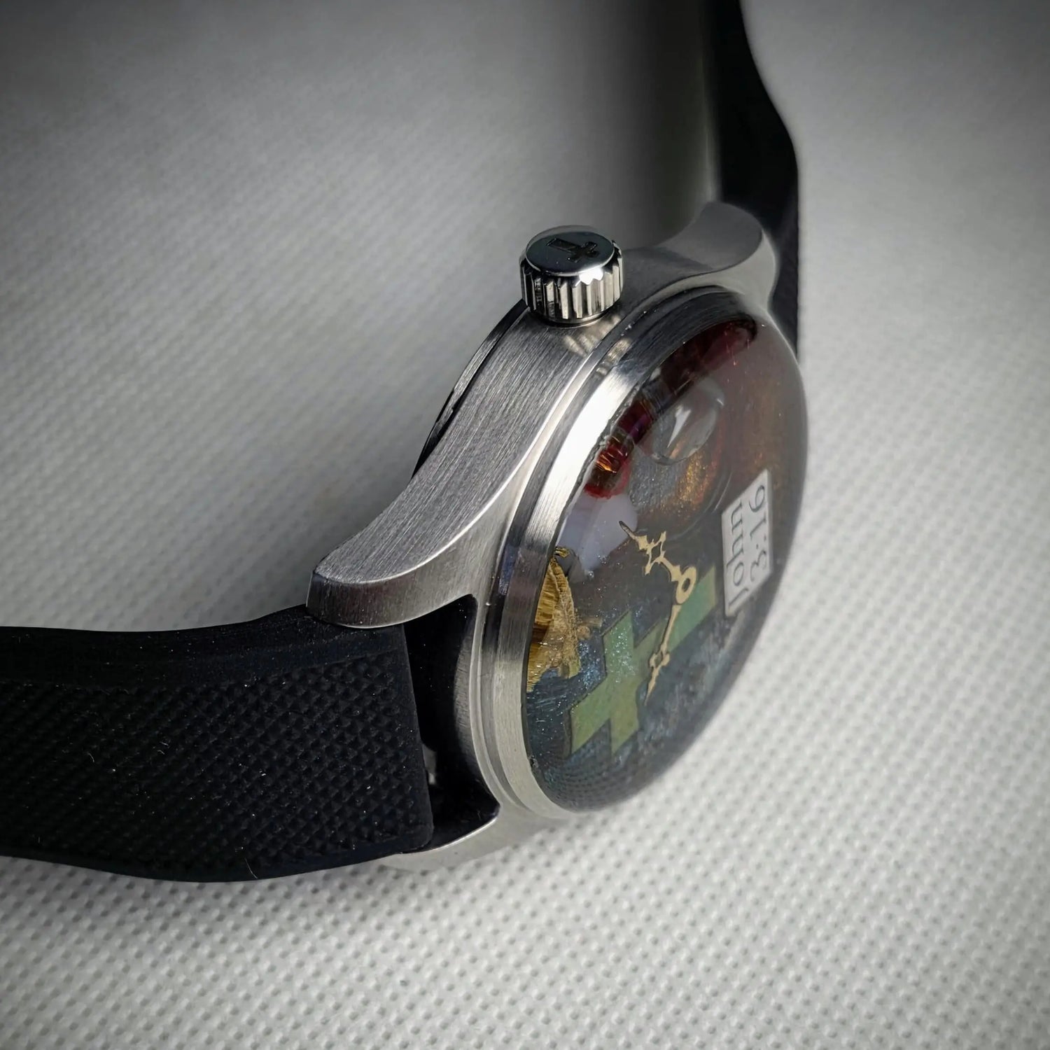 A handcrafted art piece contained within a 42 mm stainless-steel case, designed not to tell time, but to tell the story of faith, sacrifice, and eternal life.