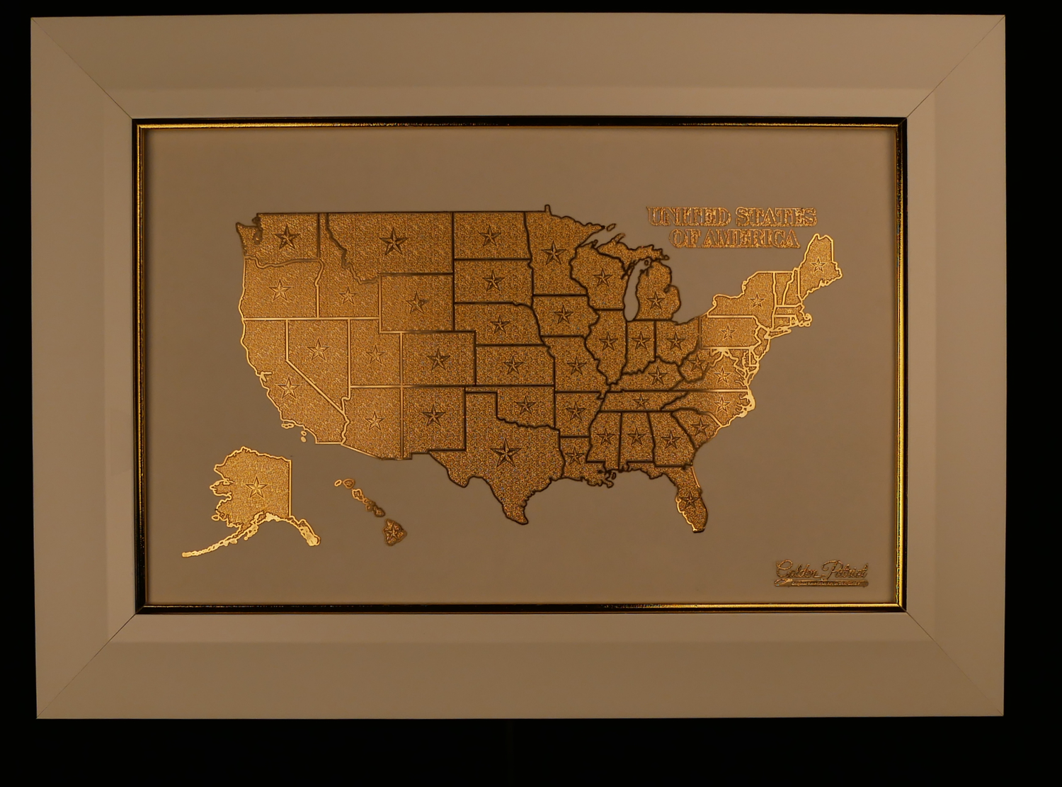 A must-have for collectors, history enthusiasts, and patriots, Golden States is more than a map—it's a statement of national identity and excellence, a timeless piece that embodies the spirit of America in 24K gold p.