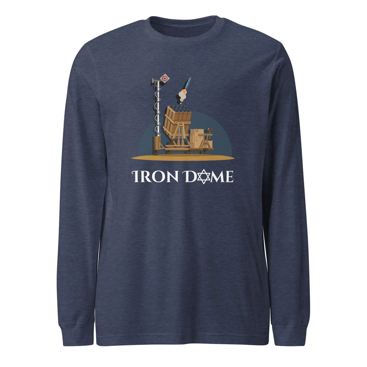 Show your support for Israel’s strength and defense with this Iron Dome Long Sleeve Unisex Shirt. Featuring a detailed depiction of the Iron Dome defense system, accompanied by bold text, this shirt is both stylish and meaningful.