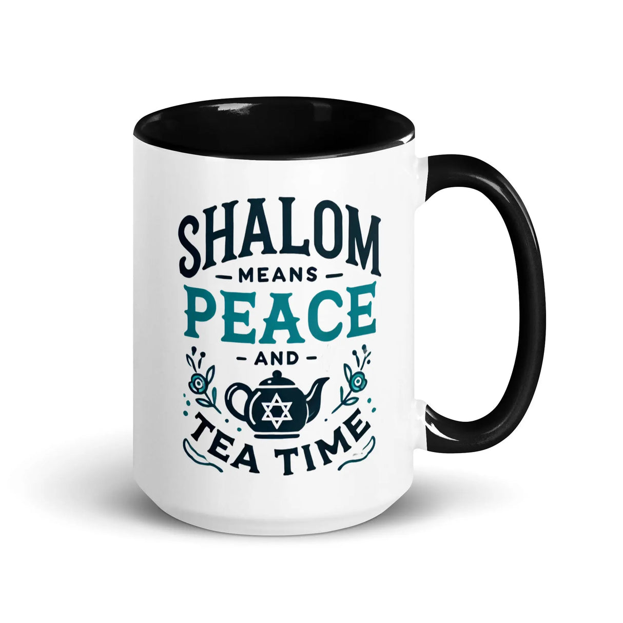 Shalom Means Peace and Tea Time Mug - Black / 11 oz is backordered and will ship as soon as it is back in stock.